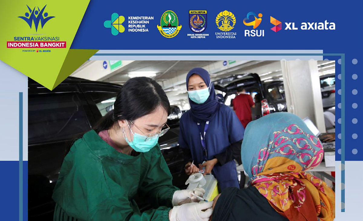 Sentra Vaksinasi Indonesia Bangkit berlokasi di Gedung Parkir Rumah Sakit UI, Depok. Proses vaksinasi tetap dilaksanakan secara drive thru dan walk-in di bawah pengawasan Kementerian Kesehatan dan institusi yang berwenang lainnya. Untuk kelancaran pelaksanaanya, setiap hari sentra vaksinasi ini mendapatkan dukungan lebih dari 130 relawan, termasuk di dalamnya dokter, perawat, petugas keamanan, dan administrasi. Mereka berasal dari Ikatan Alumni UI, karyawan XL Axiata dan tenaga medis RSUI.