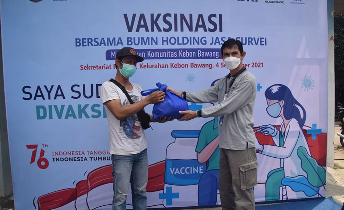 Setelah sukses melaksanakan Vaksin Bersama di Kelurahan Pancoran pada 14 Agustus 2021 lalu, melalui program kolaborasi Tanggung Jawab Sosial dan Lingkungan (TJSL) Holding BUMN Jasa Survei yang terdiri dari PT Biro Klasifikasi (Persero), PT Sucofindo (Persero) dan PT Surveyor Indonesia (Persero), kembali bersinergi menyelenggarakan kegiatan Vaksin Covid-19 bagi warga Kelurahan Kebon Bawang, Tanjung Priok.