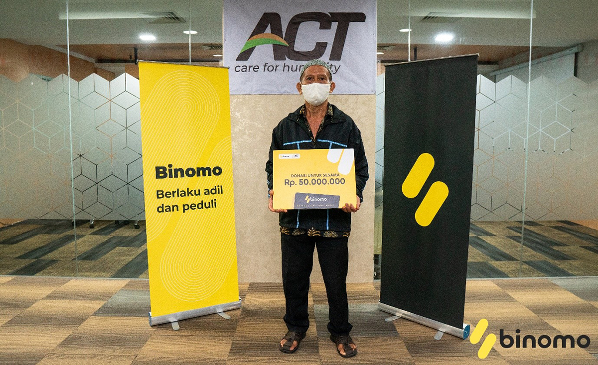 Melalui program CSR (Corporate Social Responsibility), Binomo menginisiasi program donasi kepada masyarakat dibawah naungan ACT (Aksi Cepat Tanggap). Perusahaan platform digital online ini akan mendonasikan uang tunai sebesar Rp. 50 juta rupiah sebagai bentuk Tanggung Jawab Sosial Perusahaan di Indonesia.