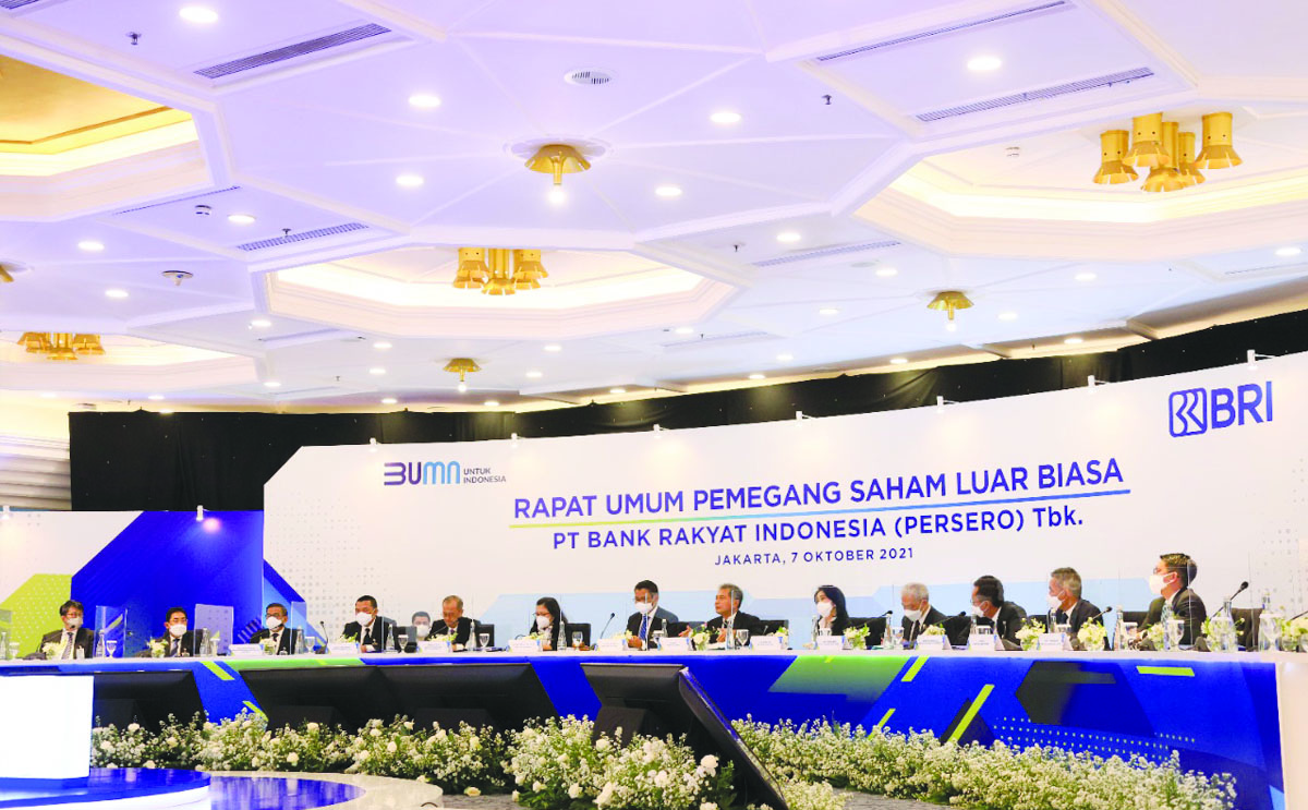 INDOPOSCO.ID – PT. Bank Rakyat Indonesia (Persero) Tbk menggelar Rapat Umum Pemegang Saham Luar Biasa (RUPSLB) pada Kamis (07/10) di Jakarta. Dalam RUPSLB tersebut, perseroan menetapkan dua agenda, pertama adalah mengukuhan pemberlakuan Peraturan Menteri BUMN RI Nomor PER-05/MBU/04/2021 tanggal 8 April 2021 tentang Program Tanggung Jawab Sosial dan Lingkungan Badan Usaha Milik Negara. Kedua, mengenai perubahan susunan pengurus perseroan.