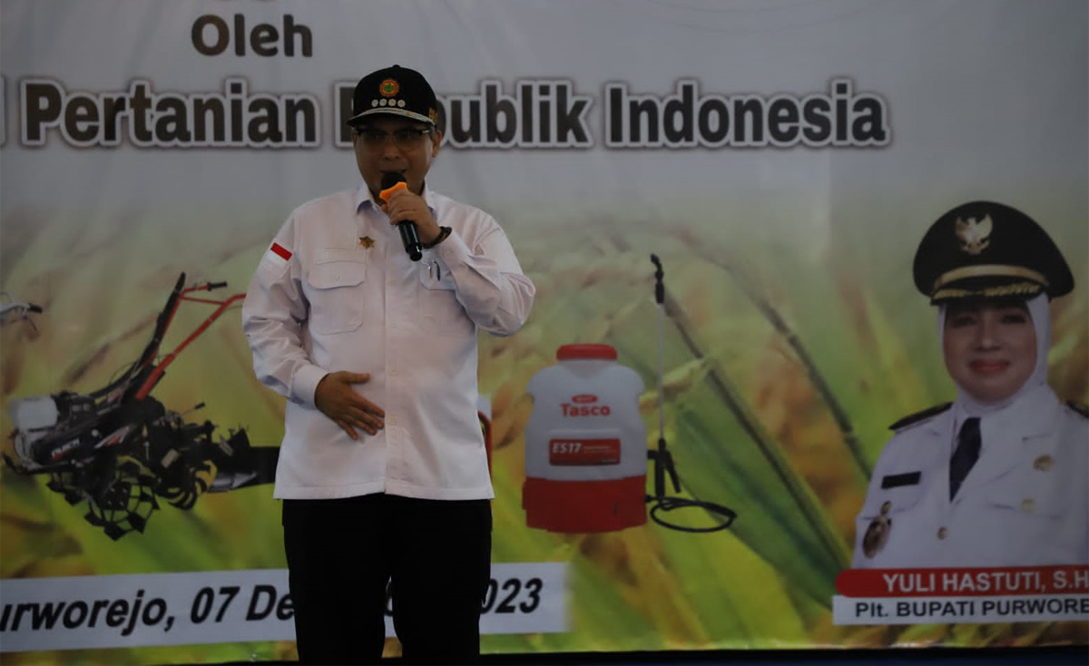 “Kita lakukan percepatan, seperti di Purworejo ini kita lakukan pemberian bantuan alat mesin pertanian (alsintan) agar dapat segera diterima masyakarat sehingga produksi dapat meningkat,” kata Wamentan pada acara tersebut di Pendopo Bupati Purworejo, Kamis (7/12/2023).