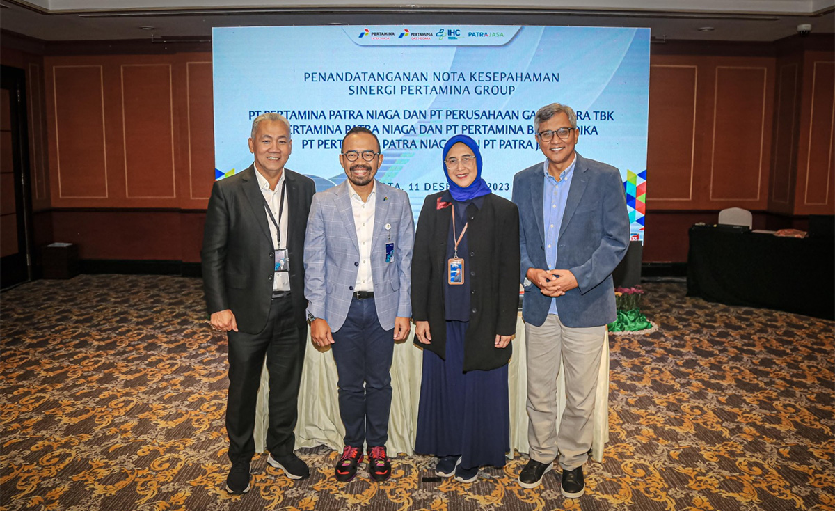 Mewujudkan komitmen sinergi ini, PT Pertamina Patra Niaga bersama Subholding Gas PT Perusahaan Gas Negara (PGN) dan Anak Perusahaan Services/Portfolio PT Pertamina Bina Media (IHC) dan PT Patra Jasa menandatangani Nota Kesepahaman (Memorandum of Understanding/MoU) Joint Marketing Business Existing serta Pengembangan Bisnis Green Energy Portfolio, Senin (11/12/2023).