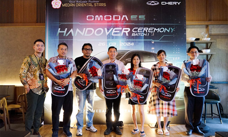 INDOPOSCO.ID – PT Chery Sales Indonesia (CSI) dan PT Medan Oriental Stars melakukan serah terima 13 unit Chery OMODA E5 kepada konsumen di Medan, Sumatera Utara. Ketiga belas Unit tersebut diserahkan oleh Henry Katio, Chairman PT Medan Oriental Stars dan Hengky Suwongso, Direktur PT Medan Oriental Stars kepada konsumen diler Chery Medan Oriental Star 1 dan 2.