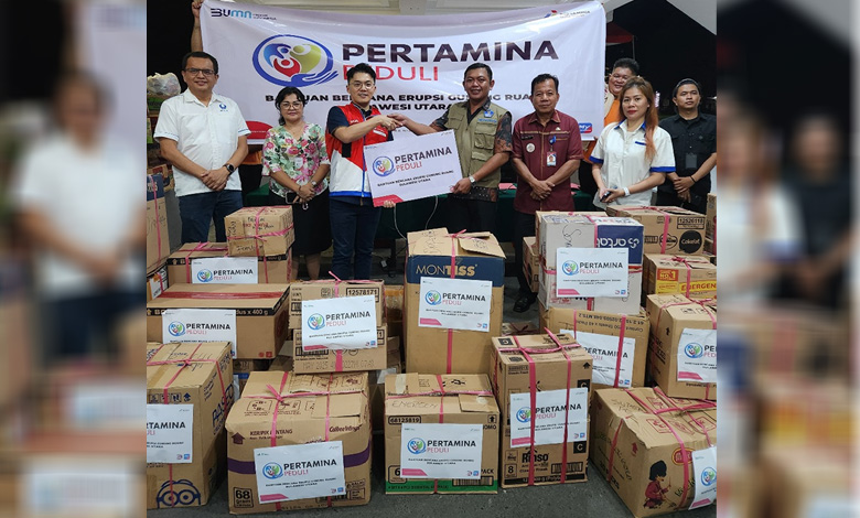 Pertamina Serahkan Bantuan untuk Korban Terdampak Letusan Gunung Ruang