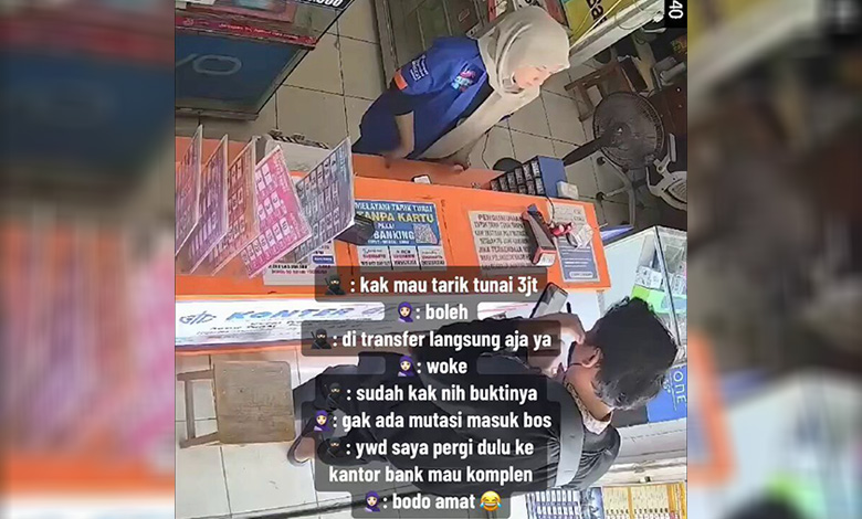 Dalam video itu menuliskan keterangan percakapan antara terduga pelaku dengan agen BRILink. Kejadian tersebut terjadi bau-baru ini, namun tak diketahui lokasinya.