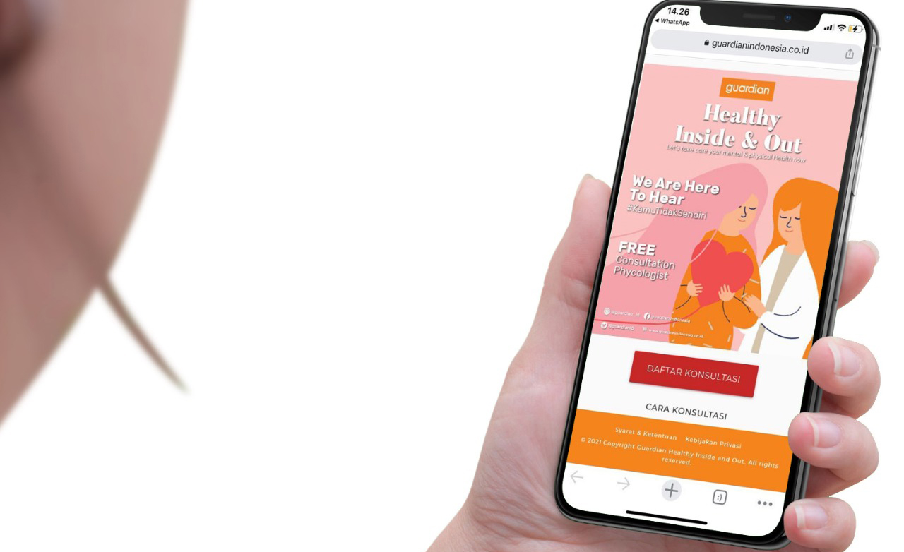 Melihat kondisi ini, Guardian sebagai retailer produk kesehatan dan kecantikan nomor satu di Indonesia mengadakan kampanye ‘Healthy Inside & Out’ untuk meningkatkan kesadaran bahwa kesehatan fisik dan mental adalah sama pentingnya. Sebagai bagian dari kampanye tersebut, Guardian juga menawarkan konsultasi psikologi gratis kepada para pelanggan dan pegawainya mulai dari 18 Februari sampai 31 Maret 2021 mendatang.