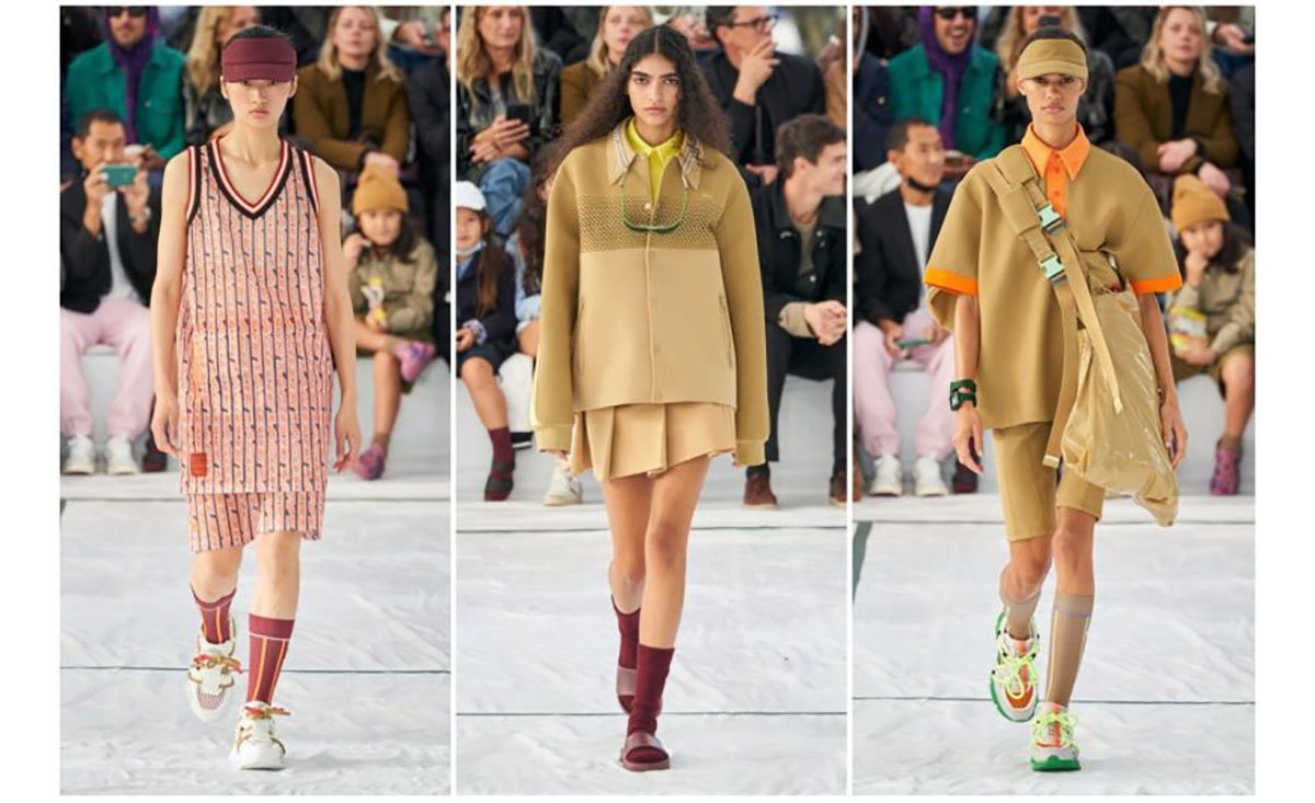 Koleksinya mencerminkan dorongan kontemporer untuk pergi dan beranjak lagi (sehabis lockdown yang cukup lama di wilayah Prancis), dengan tipe rok tenis klasik berbahan melar (stretch skirt), bandeau neoprene yang ramping, anorak berlubang dan materi pique neoprene terkini yang menerjemahkan warisan Lacoste jadi bagian ramping untuk generasi masa saat ini.