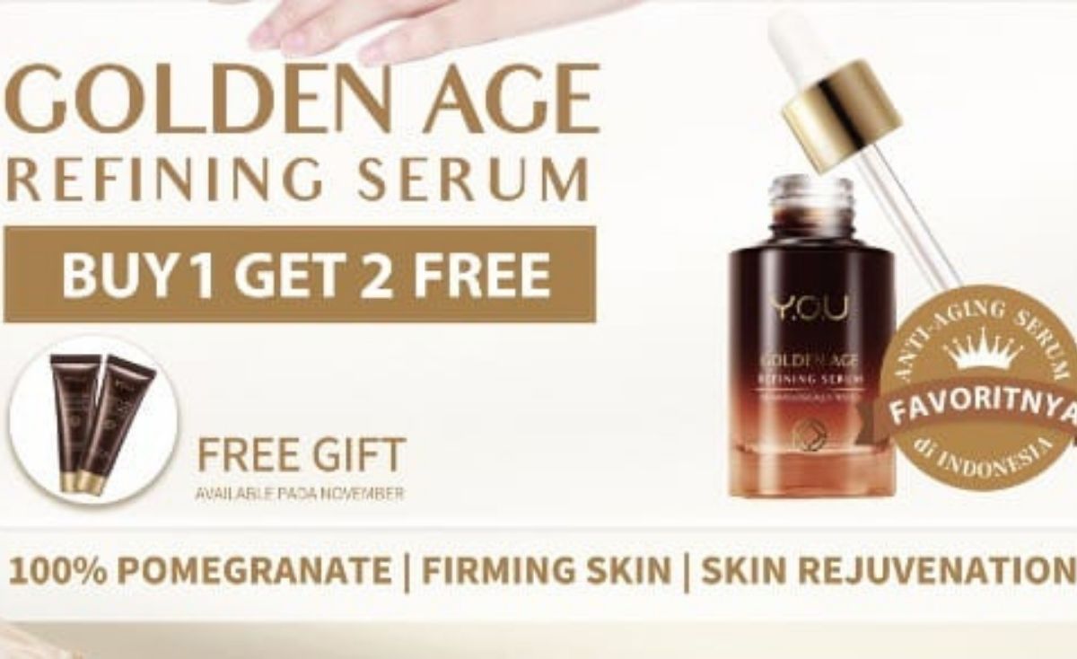 Y.O.U Golden Age Serum bisa didapatkan dengan harga Rp129.000,00 dan bisa ditemukan di toko kecantikan terdekat serta Y.O.U Official Store di Shopee, Tokopedia, dan Lazada. Nikmati promo menarik Buy 1 Get 2 Free Gift untuk setiap pembelian Y.O.U Golden Age Serum pada tanggal 01 November – 31 Desember ya! Don’t miss it!(ibs)