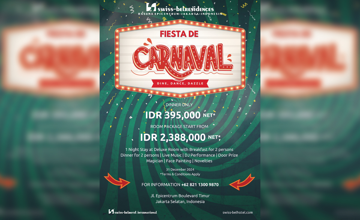 INDOPOSCO.ID – Swiss-Belresidences Rasuna Epicentrum mengundang Anda untuk merayakan malam pergantian tahun dengan kemeriahan Fiesta de Carnaval: Dine, Dance, Dazzle. Acara spesial ini menghadirkan malam penuh keceriaan, hiburan, dan suasana karnaval yang akan membuat pergantian tahun Anda semakin berkesan.