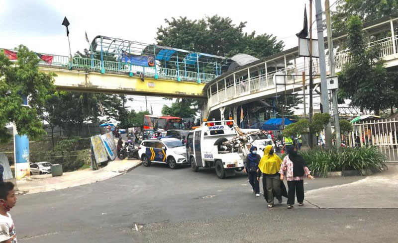 Akses jalan menuju Pasar Tanah Abang ditutup sementara untuk mencegah terjadinya kepadatan warga. Foto: Antara Anisyah Rahmawati