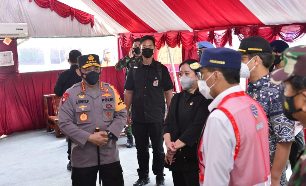 INDOPOSCO.ID – Panglima TNI Marsekal Hadi Tjahjanto bersama Kapolri Jenderal Listyo Sigit Prabowo dan Ketua DPR RI Puan Maharani meninjau posko penyekatan check point Pelabuhan Bakauheni Lampung.