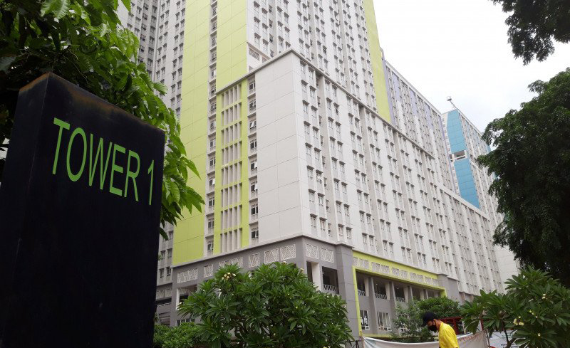 Warga melintasi kawasan Wisma Atlet Kemayoran Jakarta Pusat. Foto: Antara/Muhammad Zulfikar