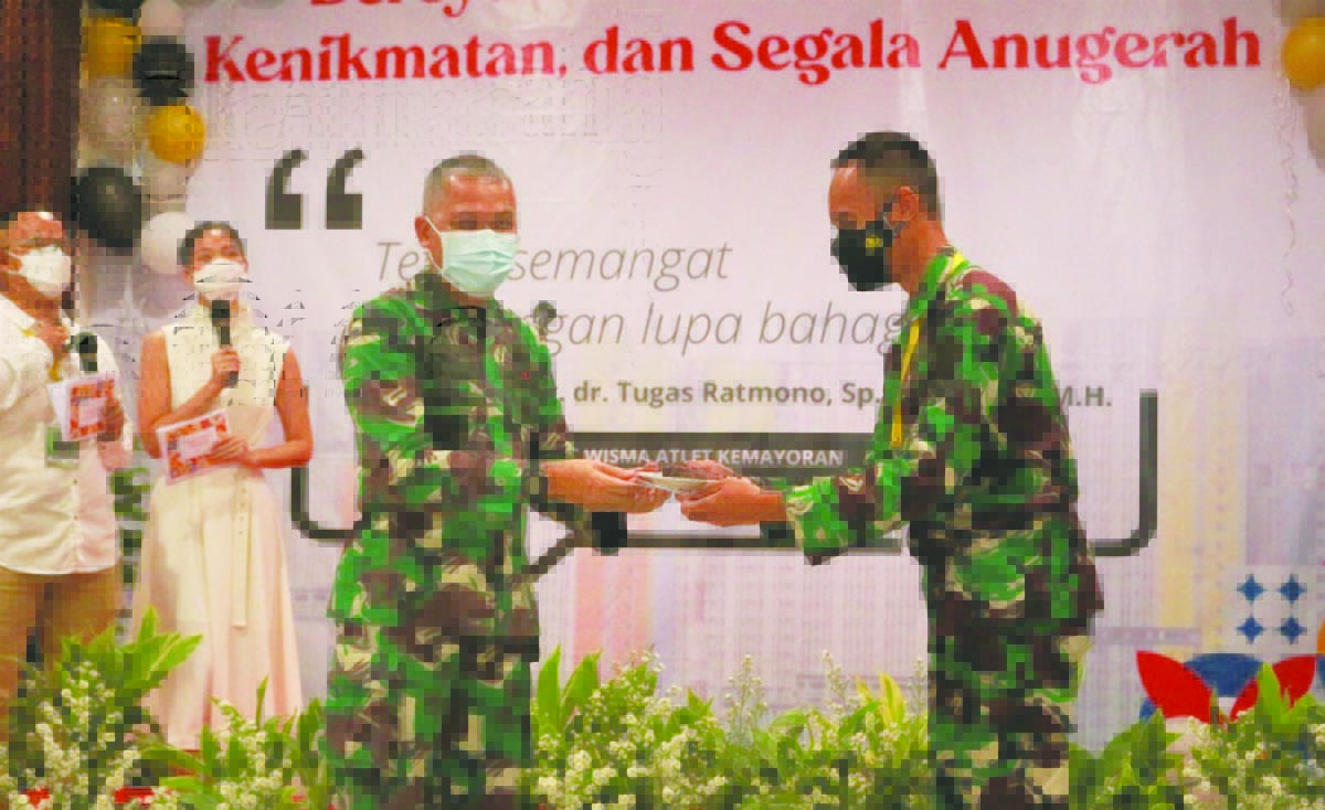 “Tetap Semangat dan Jangan Lupa Bahagia” merupakan rangkaian kata yang selalu diucapkan Mayjen Tugas saat berjumpa dengan para tenaga kesehatan serta pasien.