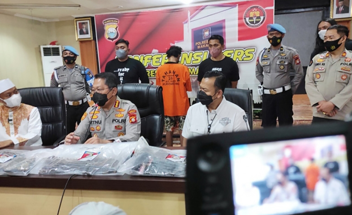 “Pukul 14.00 WITA, kami mendapat informasi pelaku berada di wilayah Tinumbu. Tim bergerak ke sana dan berhasil membekuknya,” ujar Kapolrestabes Makassar, Kombes Pol Witnu Urip Laksana saat rilis beserta tersangka di kantor polisi setempat, Sabtu.