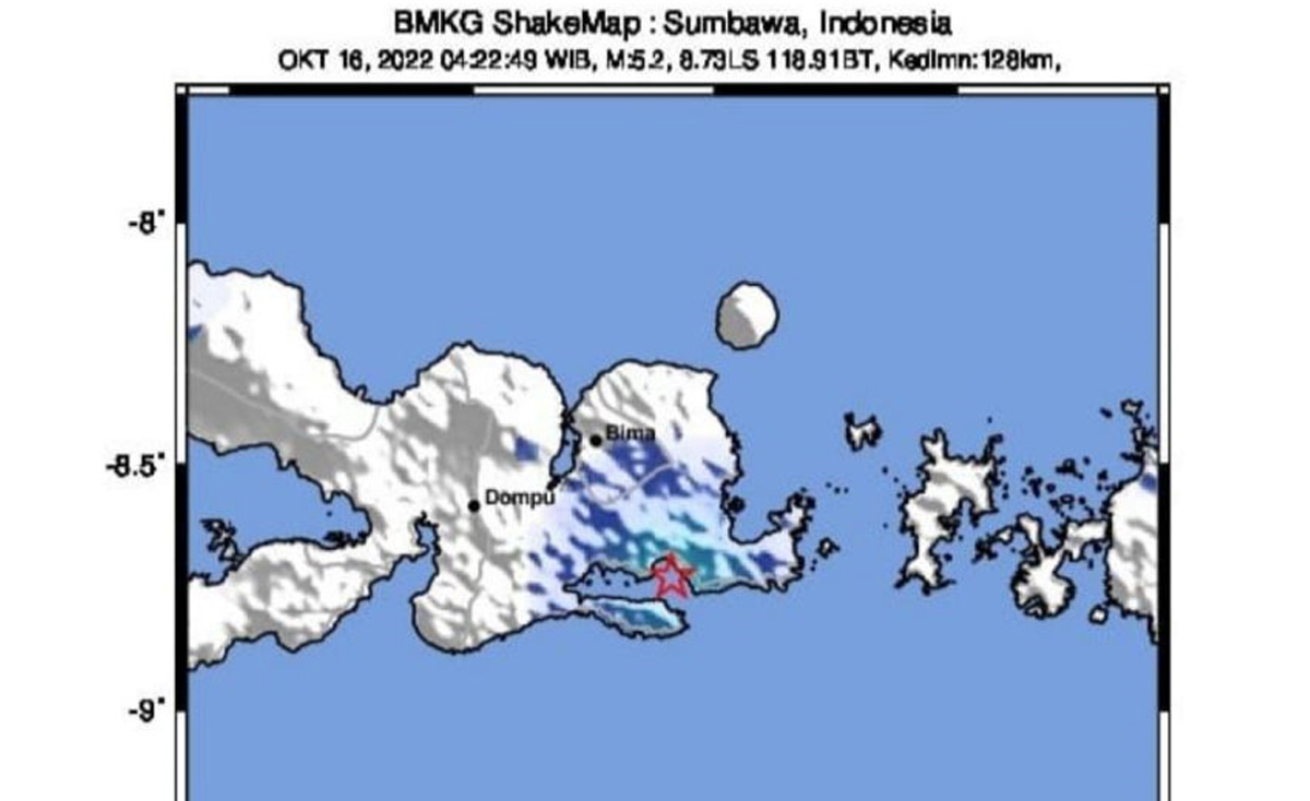 Gempa bumi terjadi pada Minggu, 16 Oktober 2022 pukul 04.22.49 WIB di wilayah Pantai Timur Laut Bima, NTB.