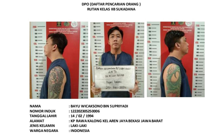 “Saat ini Bayu sudah ditetapkan sebagai DPO dan kami mengimbau kepada masyarakat yang tahu atau menemukan yang bersangkutan segera melaporkan keberadaannya ke Kanwil Kemenkumham Lampung dan aparat penegak hukum,” ujar Kadivpas Kanwil Kemenkumham Lampung, Kusnali kepada Indopos.co.id, Jumat (175/2024).