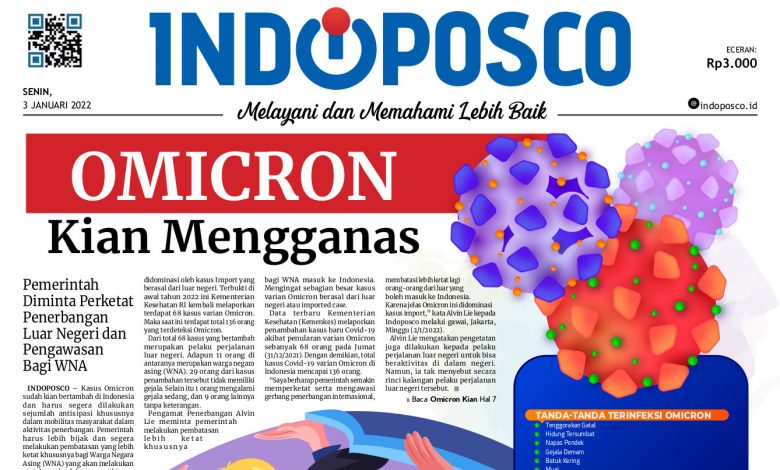 KORAN INDOPOSCO – Kasus Omicron sudah kian bertambah di Indonesia dan harus segera dilakukan sejumlah antisipasi khususnya dalam mobilitas masyarakat dalam aktivitas penerbangan. Pemerintah harus lebih bijak dan segera melakukan pembatasan yang lebih ketat khususnya bagi Warga Negara Asing (WNA) yang akan melakukan perjalanan ke dalam negeri hingga memberhentikan WNI untuk melakukan perjalanan ke luar negeri.