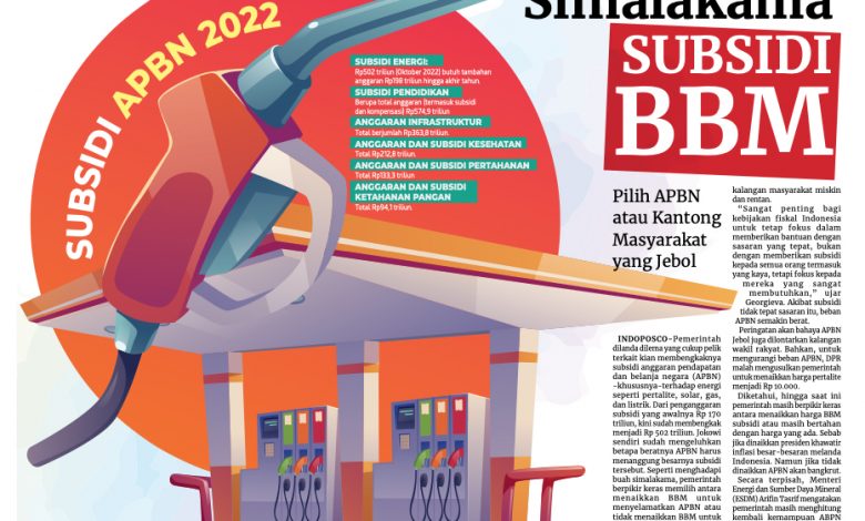 KORAN INDOPOSCO – Pemerintah dilanda dilema yang cukup pelik terkait kian membengkaknya subsidi anggaran pendapatan dan belanja negara (APBN) -khususnya-terhadap energi seperti pertalite, solar, gas, dan listrik. Dari penganggaran subsidi yang awalnya Rp 170 triliun, kini sudah membengkak menjadi Rp 502 triliun. Jokowi sendiri sudah mengeluhkan betapa beratnya APBN harus menanggung besarnya subsidi tersebut. Seperti menghadapi buah simalakama, pemerintah berpikir keras memilih antara menaikkan BBM untuk menyelamatkan APBN atau tidak menaikkan BBM untuk menyelamatkan perekonomian masyarakat.