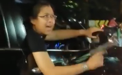 Pengemudi mobil itu mengacungkan senjata usai terlibat tabrakan dengan dua wanita yang menumpang sepeda motor. (gin)