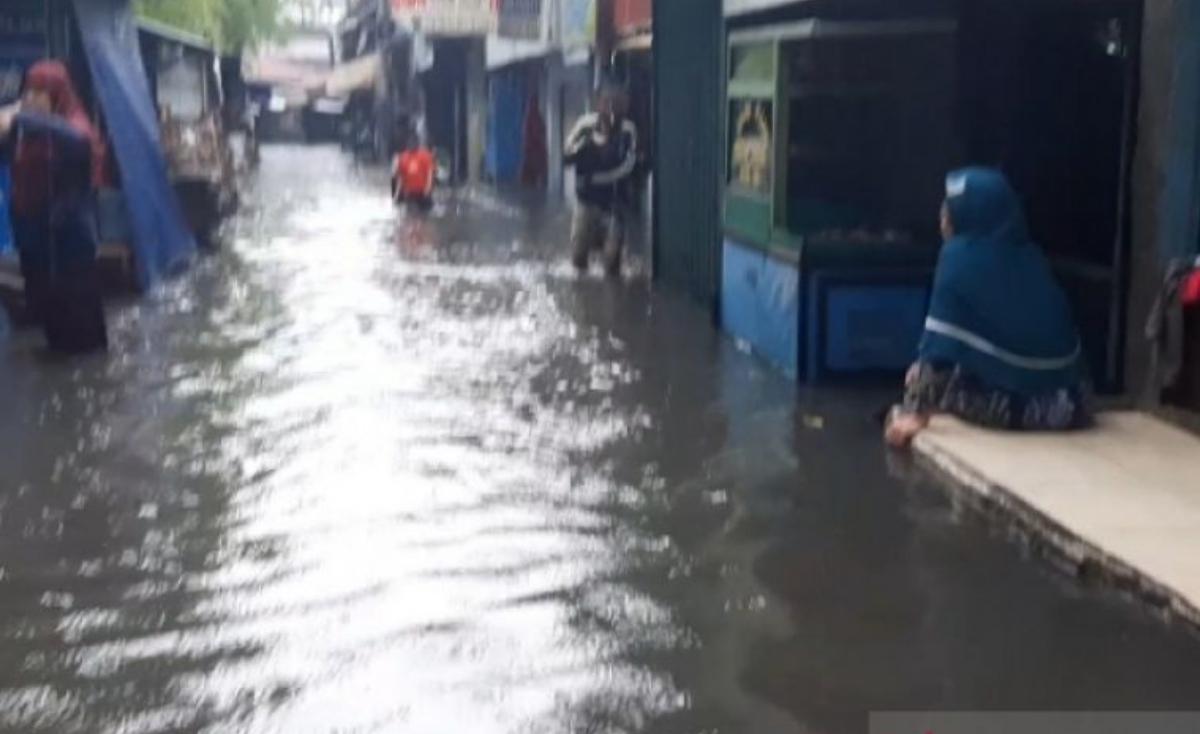 Banjir juga melanda satu RT di Kelurahan Gunung dengan ketinggian 50 cm karena meluapnya Kali Jelawe.