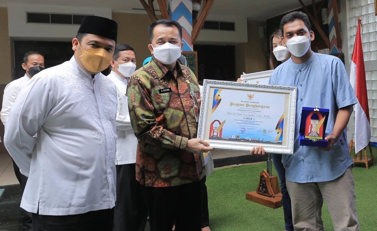 Wali Kota Tangerang H. Arief R. Wismansyah menyerahkan langsung sertifikat kepada para pemenang lomba yang hadir dalam acara penganugerahan pemenang LKTI Tingkat Nasional Tahun 2021 di Pusat Pemerintahan Kota Tangerang, Jumat (12/11).