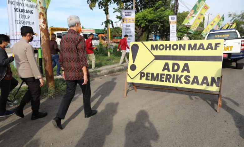 INDOPOSCO.ID – Gubernur Jawa Tengah Ganjar Pranowo melakukan pengecekan di pintu masuk utama Jawa Tengah via darat, yakni exit tol Pejagan dan perbatasan Kecipir Losari Brebes, Selasa (4/5/2021).