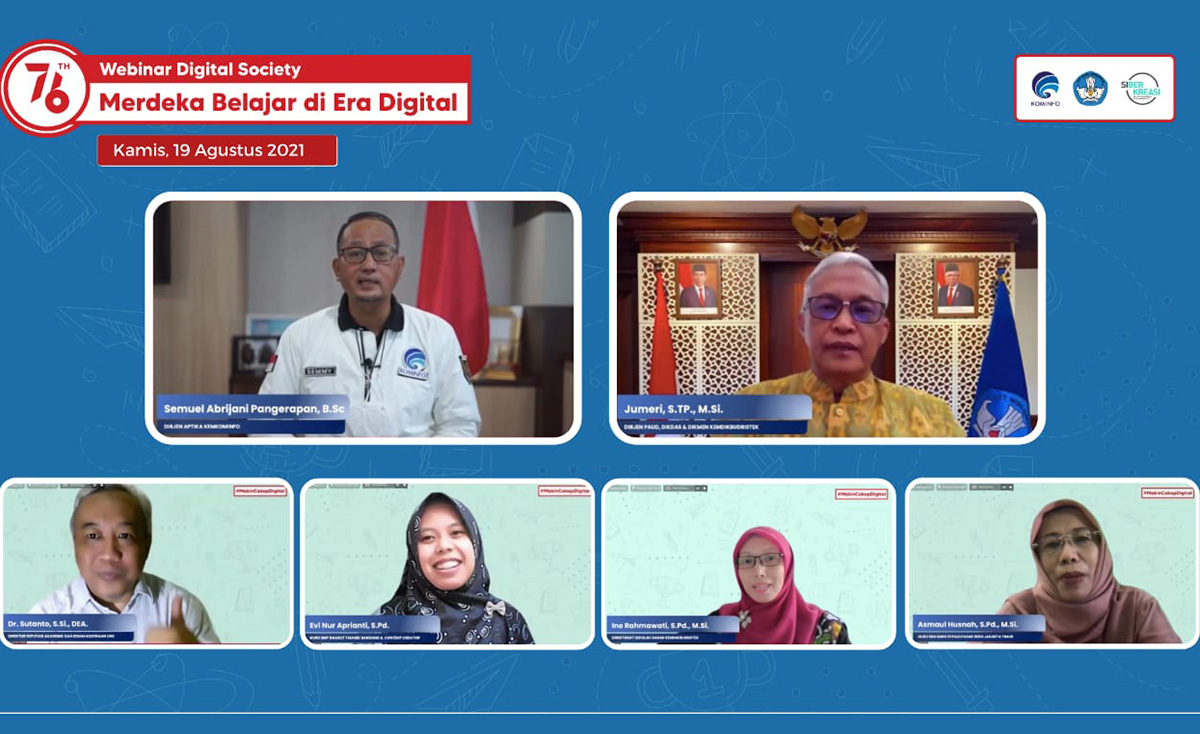 INDOPOSCO.ID – Kementerian Komunikasi dan Informatika (Kemkominfo) bersama GNLD Siberkreasi dan Kementerian Pendidikan, Kebudayaan, Riset, dan Teknologi (Kemendikbud Ristek) kembali mengadakan Webinar Digital Society pada Kamis (19/8). Pembahasan dalam webinar kali ini adalah “Merdeka Belajar di Era Digital” yang dimulai pukul 10.00 WIB dan disiarkan langsung melalui Zoom Webinar, Kanal Youtube Siberkreasi, Facebook Live Siberkreasi, Youtube Kemkominfo TV, Youtube Direktorat Sekolah Dasar, dan Youtube Video Pendidikan Indonesia.