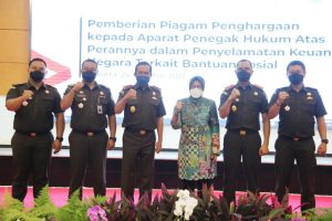 “Sejak awal kami menjalin kerja sama dengan aparat penegak hukum, sebab tidak mungkin menyelesaikan sendiri karena jumlah pengaduan dari masyarakat yang sangat banyak,” kata Menteri Sosial (Mensos) Tri Rismaharini dalam acara Pemberian Piagam Penghargaan kepada Aparat Penegak Hukum dalam Penyelamatan Uang Negara terkait Bansos di Gedung Aneka Bhakti Jakarta, Selasa (24/8/2021).
