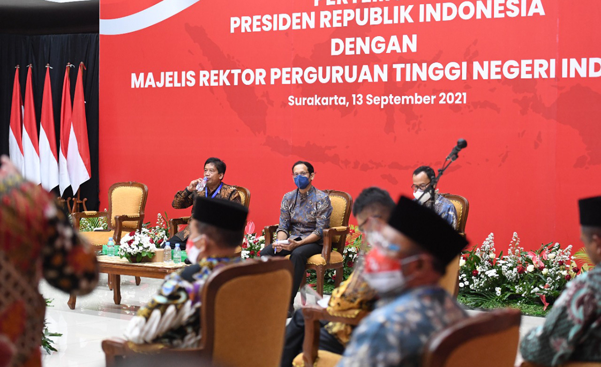 Pernyataan tersebut disampaikan Presiden Joko Widodo dalam Pertemuan Majelis Rektor Perguruan Tinggi Negeri Indonesia (MRPTNI) yang dilaksanakan di Auditorium Fakultas Kedokteran Universitas Sebelas Maret, Kota Surakarta pada Senin, 13 September 2021.