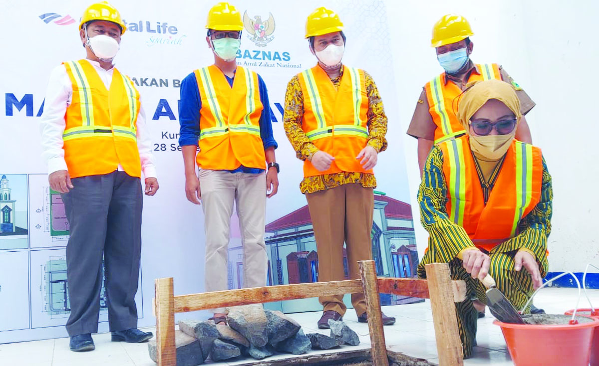 INDOPOSCO.ID – Ketua Badan Amil Zakat Nasional (Baznas) Noor Achmad bersama Direktur Utama PT Capital Life Syariah Fitri Hartati meletakkan batu pertama sebagai tanda dimulainya pembangunan Masjid Al-Hidayah di Kampung Babakan RT 16 RW 08 Desa Cirahayu, Kecamatan Luragung, Kabupaten Kuningan, Provinsi Jawa Barat, Selasa (28/9/2021).
