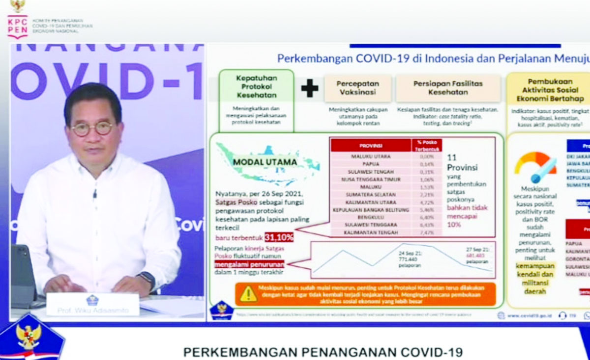 “Dengan kebijakan yang efektif dan tepat sasaran dari pemerintah serta kepatuhan masyarakat dalam menjalankannya, bukan tidak mungkin Indonesia akan terbebas dari pandemi dan mencapai tatanan masyarakat produktif yang aman dari Covid-19,” ujar Wiku seperti dikutip Antara, Selasa (28/9/2021).