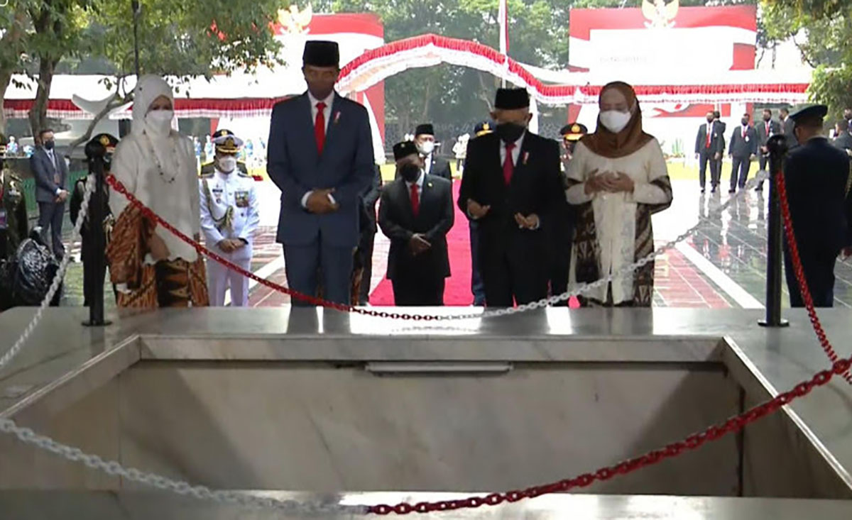 Turut hadir Ibu Negara Iriana Joko Widodo dan Wakil Presiden Ma’ruf Amin yang didampingi Ibu Wakil Presiden Wuri Ma’ruf Amin. Adapun tema Upacara Peringatan Hari Kesaktian Pancasila Tahun 2021 ‘Indonesia Tangguh Berlandaskan Pancasila’. (dan)