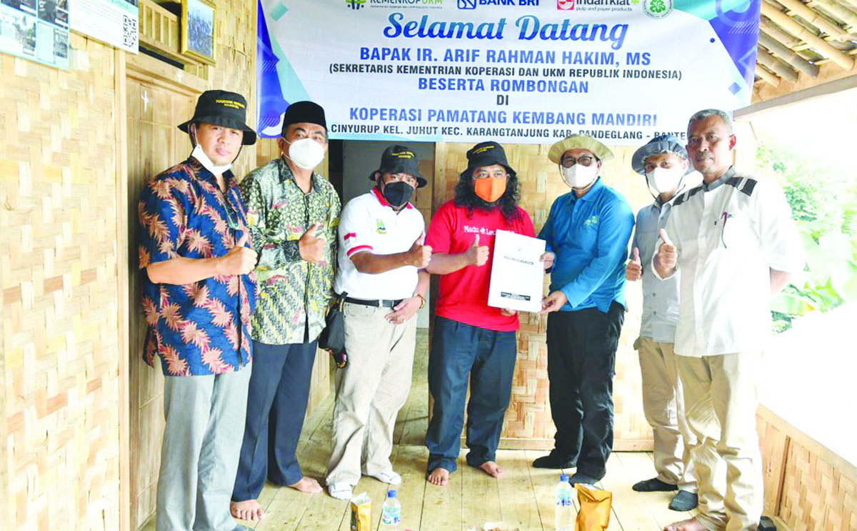 INDOPOSCO.ID – “Setelah koperasi resmi berbadan hukum, kami lebih percaya diri lagi.” Hal itu diungkapkan Aktivis Penggerak Tani Umbi Sente (Talas Balitung) sekaligus Ketua Koperasi Pamatang Kembang Mandiri (PKM), Hendra Pranova usai menerima sertifikat badan hukum koperasi dari Sekretaris Kementerian Koperasi dan UKM (SesKemenkopUKM) Arif Rahman Hakim di Kampung Cinyurup (Kampung Domba), Kelurahan Juhut, Kabupaten Pandeglang, Banten, Sabtu (2/10/2021).