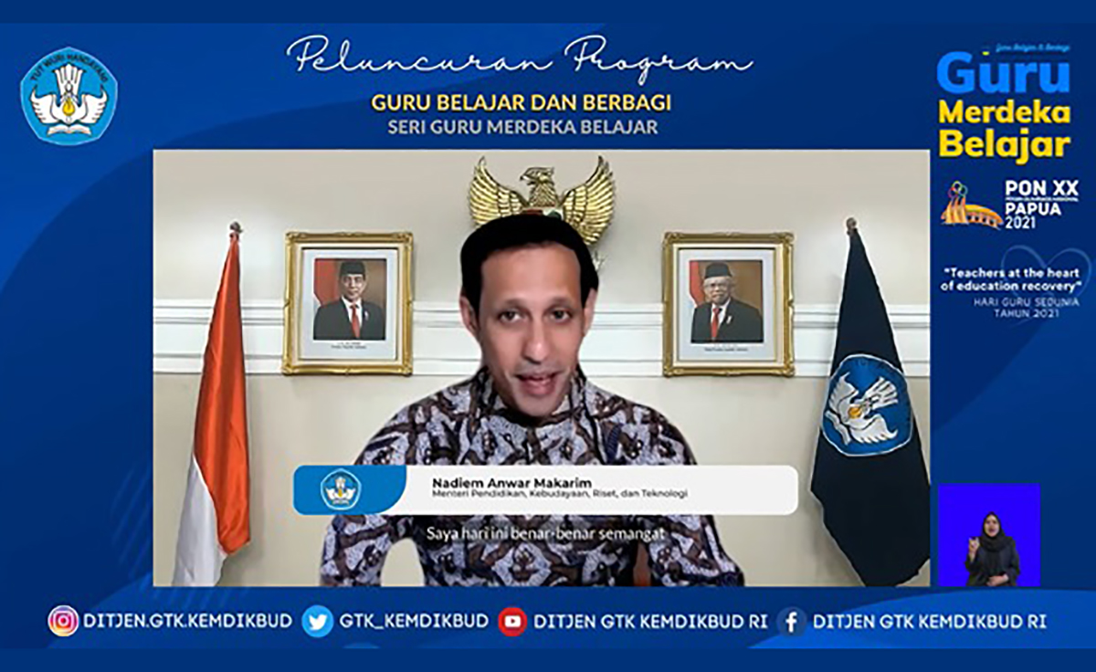 “Kami juga mengembangkan platform guru belajar dan berbagi sehingga para guru bisa belajar dari rekan sejawatnya dalam mengembangkan pembelajaran,” tutur Menteri Nadiem.