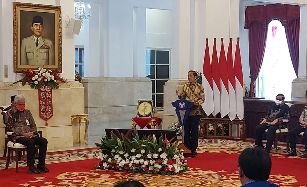 Presiden Jokowi menjelaskan bahwa surplus atau stok beras yang dimiliki di tengah krisis pangan dunia, menjadi salah satu indikator Indonesia berhasil meraih penghargaan atas sistem ketahanan pangan yang baik dari IRRI.