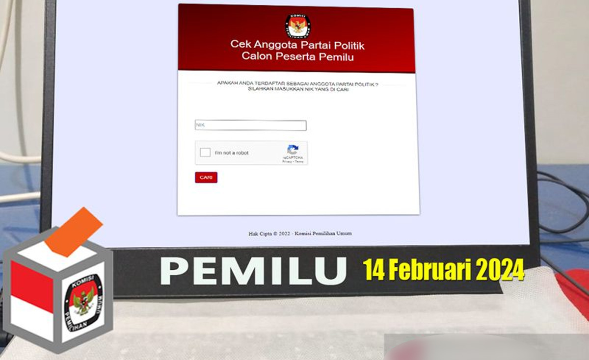 Muncul frasa “Cek Anggota Partai Politik Calon Peserta Pemilu” dan “APAKAH ANDA TERDAFTAR SEBAGAI ANGGOTA PARTAI POLITIK? SILAHKAN [silakan] MASUKKAN NIK YANG DI CARI [dicari]”.