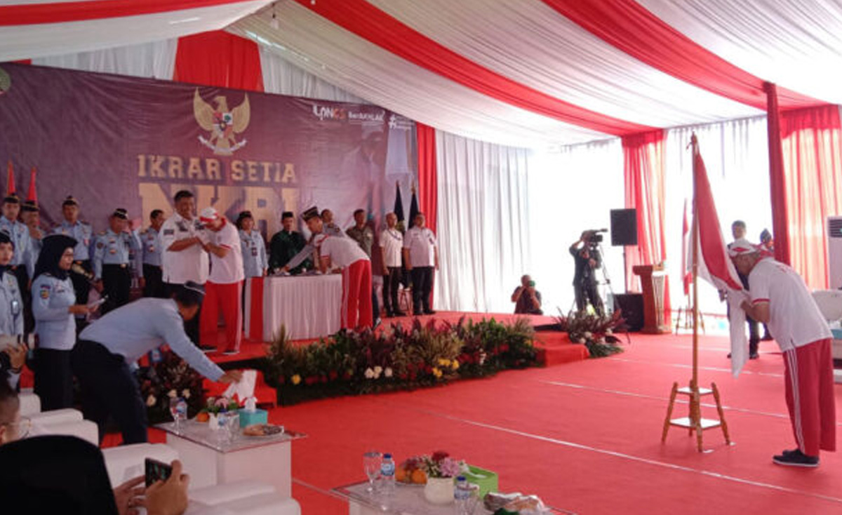 INDOPOSCO.ID – Cuaca di sekitaran Gunung Sindur, Bogor begitu terik. Namun itu tak menyurutkan semangat para narapidana terorisme (Napiter) untuk melakukan ikrar setia kepada Negara Kesatuan Republik Indonesia (NKRI).