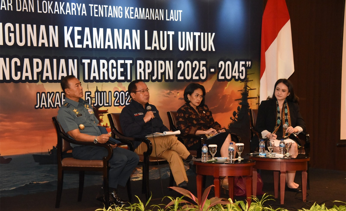Seminar tersebut turut menghadirkan Menteri Koordinator Bidang Politik, Hukum, dan Keamanan Prof. Dr. H. Mohammad Mahfud Mahmodin, S.H., S.U., M.I.P., sebagai pembuka serta sambutan kunci, serta terdapat 3 narasumber untuk sesi pertama, yaitu Anggota Komisi & Badan Legislasi DPR-RI Christina Aryani, S.E., S.H., M.H., Kepala Bakamla RI Laksdya TNI Dr. Aan Kurnia, serta Kepala Staf TNI AL Laksamana TNI Muhammad Ali, S.E., M.M., M.Tr. Opsla., yang diwakilkan oleh Asisten Operasi Kasal Laksda TNI Denih Hendrata, S.E., M.M., CHRMP. (bro)