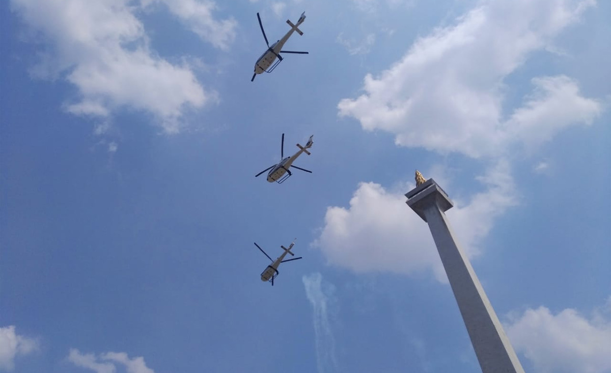 “Untuk formasinya dari Jupiter aerobatik, menampilkan tujuh formasi dan kemudian dari aerobatik helikopter pegasus juga menampilkan kolaborasi teaterikal yang ada di bawah,” tuturnya.