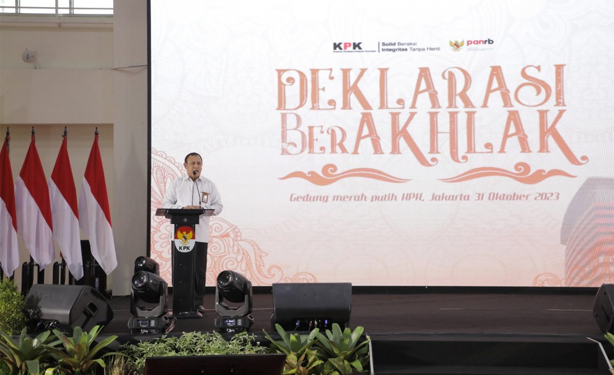 Hal ini disampaikan Ketua KPK Firli Bahuri dalam kegiatan deklarasi Ber-AKHLAK di Gedung Merah Putih KPK, Selasa (31/10/2023). Nilai-nilai dasar ASN Ber-AKHLAK, yaitu berorientasi pelayanan, akuntabel, kompeten, harmonis, loyal, adaptif, dan kolaboratif.