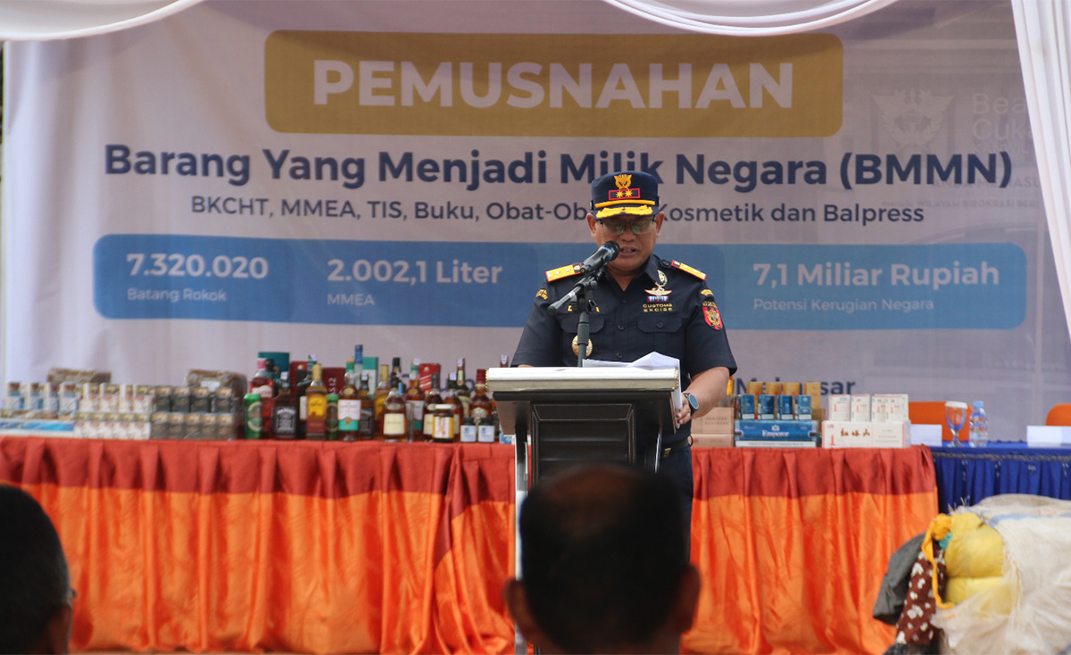 Untuk itu, telah dilakukan pemusnahan terhadap sejumlah barang kena cukai (BKC) ilegal dan barang-barang hasil penindakan kepabeanan oleh dua unit kantor vertikal Bea Cukai, yaitu Bea Cukai Jayapura dan Kantor Wilayah (Kanwil) Bea Cukai Sulawesi Bagian Selatan (Sulbagsel).