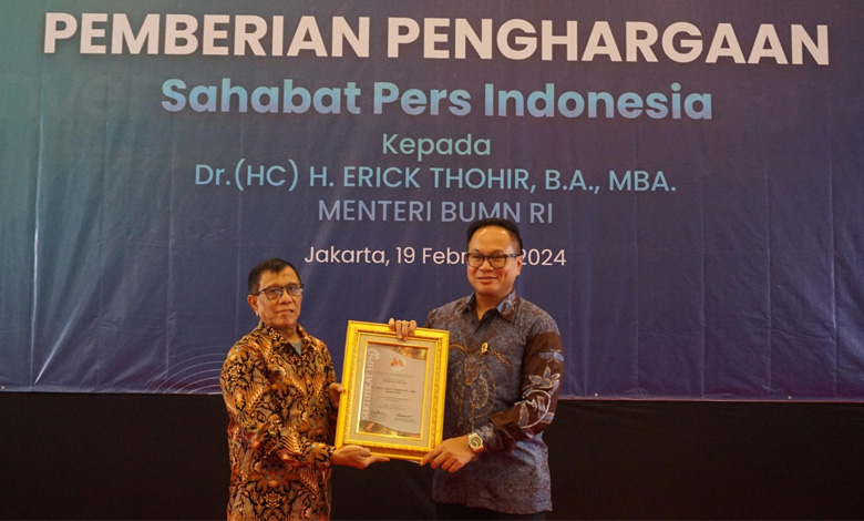 INDOPOSCO.ID – Menteri Badan Usaha Milik Negara (BUMN) RI Dr (HC) H Erick Thohir B.A MBA yang diwakilkan kepada Wamen BUMN II Kartika Wirjoatmodjo, menerima penghargaan Pin Emas dari Persatuan Wartawan Indonesia (PWI).