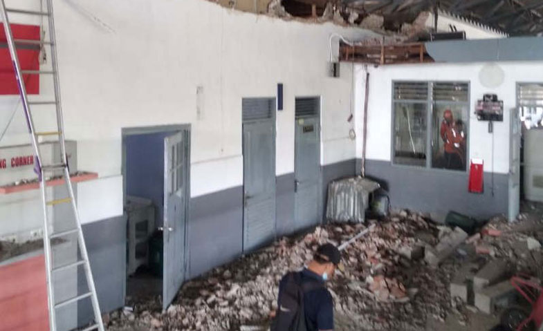 INDOPOSCO.ID – Tembok di ruang tunggu penumpang di Stasiun Pekalongan, Jawa Tengah, roboh pada Sabtu (6/3/2021) siang.