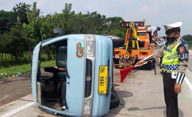 Dia mengatakan, kejadian kecelakaan tunggal kendaraan angkot E-1989-HU tersebut terjadi pada Minggu (21/3/2021) sekitar jam 09.20 WIB, di jalan Tol Cipali KM 178.400.