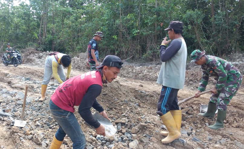 Menurut Dandim, saat ini pengerjaan jalan pedesaan ini terpantau lancar walaupun sempat ada guyuran hujan. Namun, semangat anggota serta masyarakat setempat pengerjaan bisa terus dilakukan.