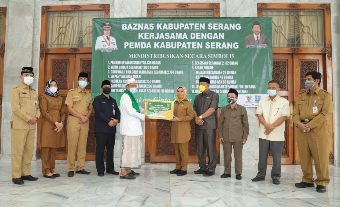 Ketua Baznas Kabupaten Serang, Wardi Muslich mengungkapkan, dari dana hibah Pemkab Serang, pihaknya mendistribusikan insentif untuk 435 pemandi jenazah, insentif 1.392 guru ngaji, insentif 1.392 guru madrasah, bantuan 50 panti asuhan, insentif 250 petugas kebersihan, bantuan 116 lansia, beasiswa untuk 2.142 siswa dan mahasiswa, serta bedah rumah untuk 144 keluarga.