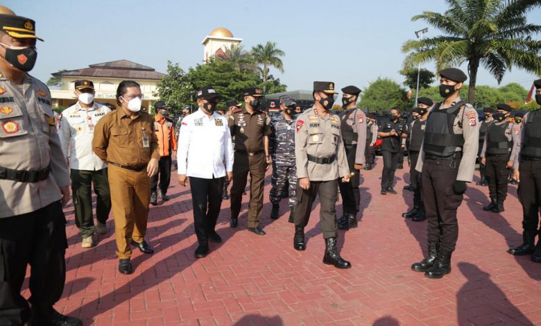 Kapolda Banten Irjen Rudy Heriyanto memimpin Apel Gelar Pasukan Dalam Rangka Pelaksanaan PPKM Darurat Di Wilayah Hukum Polda Banten di Markas Kepolisian Daerah Banten Jl Syech Nawawi Al Bantani Banjar Agung, Kecamatan Cipocok Jaya Kota Serang.