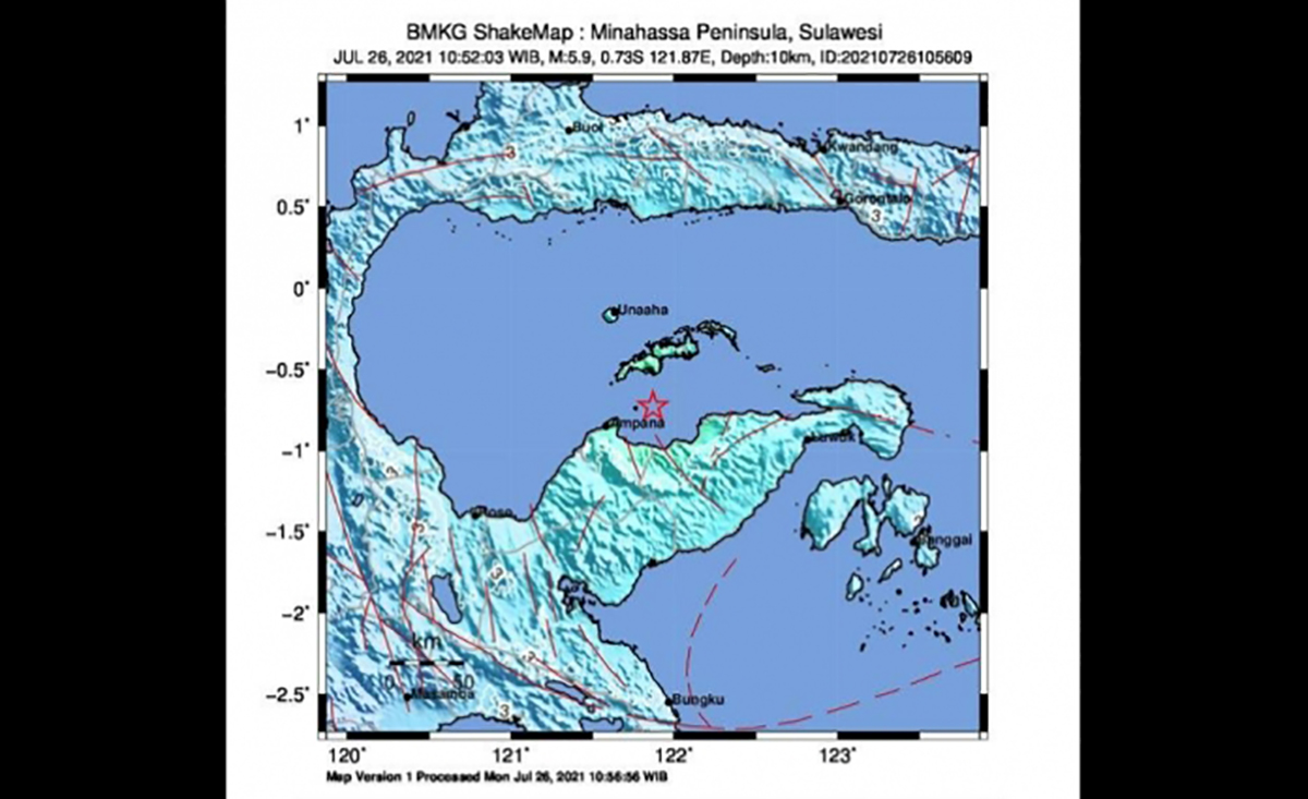 INDOPOSCO.ID – Gempa berkekuatan magnitudo (M) 5,8 mengguncang wilayah Selat Minahasa, Kabupaten Tojo Una-Una, Sulawesi Tengah pada Kamis sekitar pukul 09.14 WIB, menurut informasi Badan Meteorologi, Klimatologi dan Geofisika (BMKG) yang diterima di Jakarta.