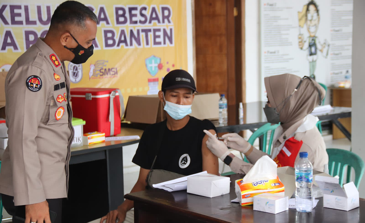 Polda Banten mengerahkan seluruh sumber daya untuk menyukseskan vaksinasi Covid-19 yang sudah dimulai sejak Mei 2021 lalu.
