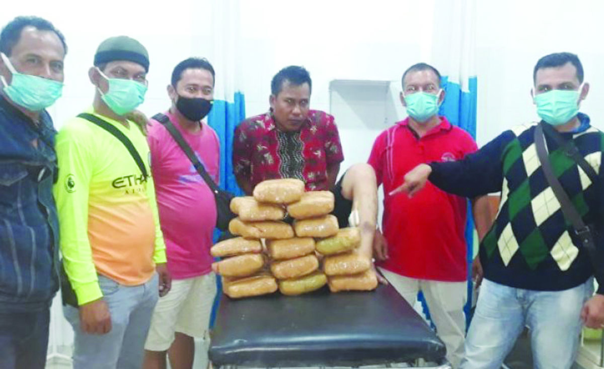 Dari tangan kedua tersangka diamankan 10 kg ganja dibungkus plastik warna hitam, satu unit sepeda motor Satria, satu buah parang, dan satu unit handphone Samsung lipat. Dalam penangkapan pengedar narkoba itu, petugas menyamar menjadi pembeli narkotika.